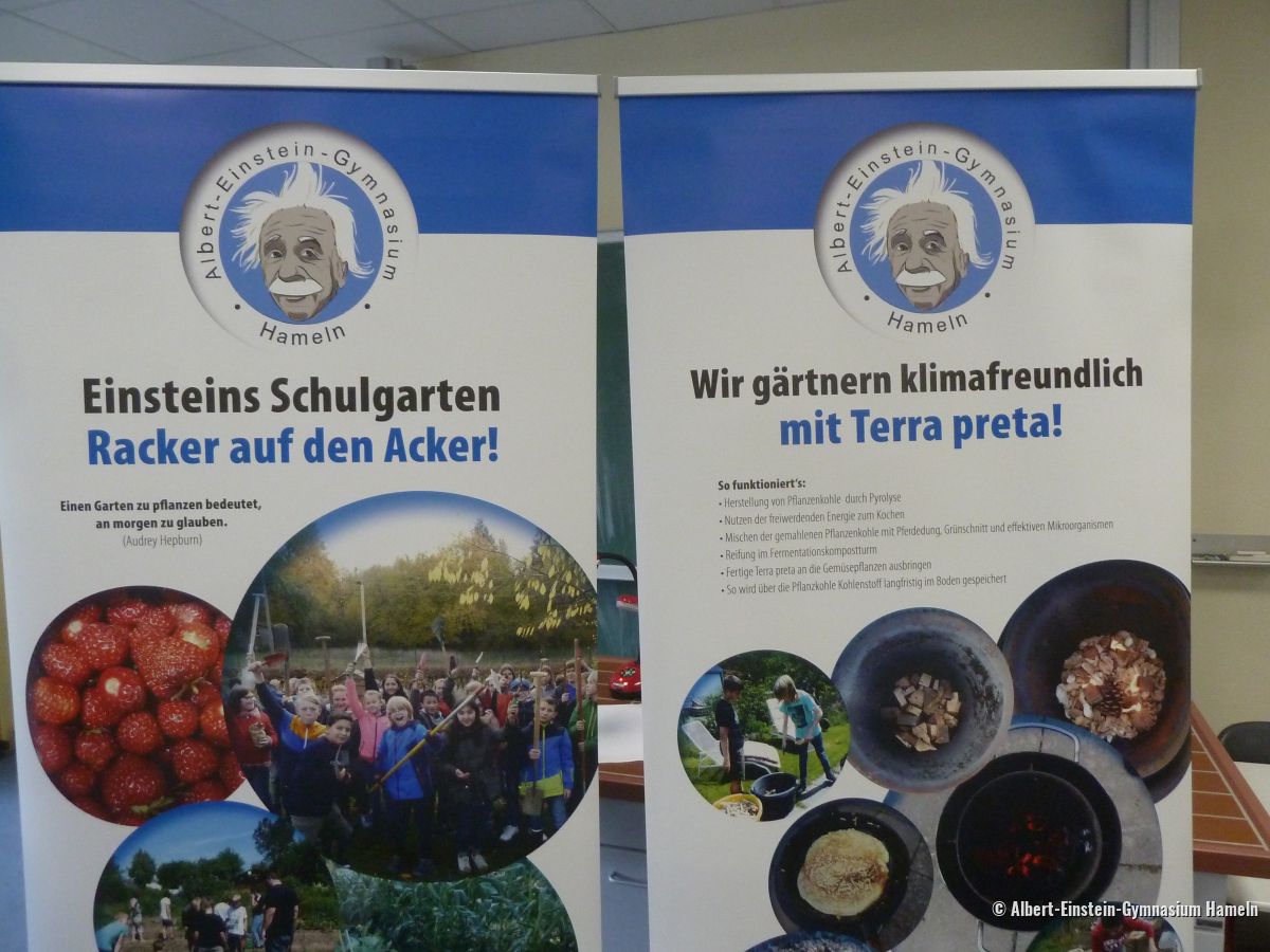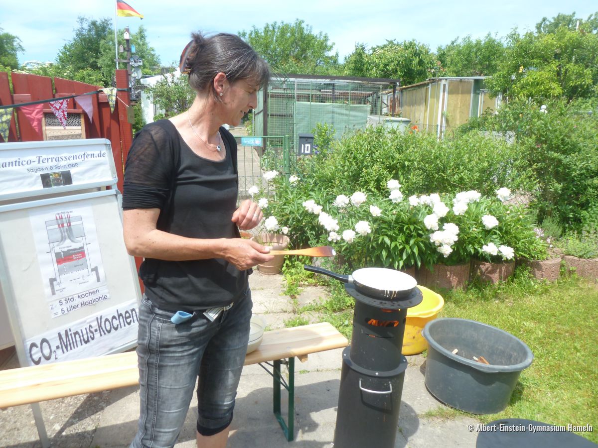 Die Schülerinnen und Schüler der Garten-AG haben das klimafreundliche Gärtnern mit der Terra preta erlernt und praktisch ausprobiert. Auf unseren Pyrolyseöfen haben wir selbst Pflanzenkohle hergestellt, die dabei frei werdende Energie zum Kochen genutzt und anschließend eine Terra preta angesetzt. Die Schüler bauten in Eigenarbeit auch zwei Fermentationskomposttürme. In dem Projekt haben die Schülerinnen und Schüler eine Technik im Gemüsebau kennengelernt und praktisch ausprobiert, die einerseits zum Klimaschutz beiträgt, indem Kohlenstoff in Form von Pflanzenkohle langfristig im Boden gespeichert wird, und die andererseits das wichtige Gut Boden langfristig mit Humus versorgt. Die Terra preta ist auch in der Lage, Wasser und Nährstoffe besser im Boden zu speichern. Dadurch lernten die Schülerinnen und Schüler, dass die Natur in Kreisläufen abläuft und in der Landwirtschaft eigentlich keine Kunstdünger nötig sind. Am Tag des Schulgartens und an den Umwelttagen Weserbergland öffneten wir für Interessierte unser Gartentor und demonstrierten die Herstellung und Verwendung der Terra preta im Rahmen eines kleinen Workshops. Ein Podcast zum Thema Terra preta wurde aufgenommen und an den Umwelttagen über den örtlichen Radiosender “Radio Aktiv” gesendet. In jeder AG-Stunde stellen wir jetzt Pflanzenkohle auf Vorrat her und wenn frisches Grünmaterial anfällt, setzen wir eine neue Terra preta an. Es wurden auch zwei Vergleichsbeete angelegt, um einmal zu beobachten, ob sich die Terra preta förderlich auf das Pflanzenwachstum auswirkt.
