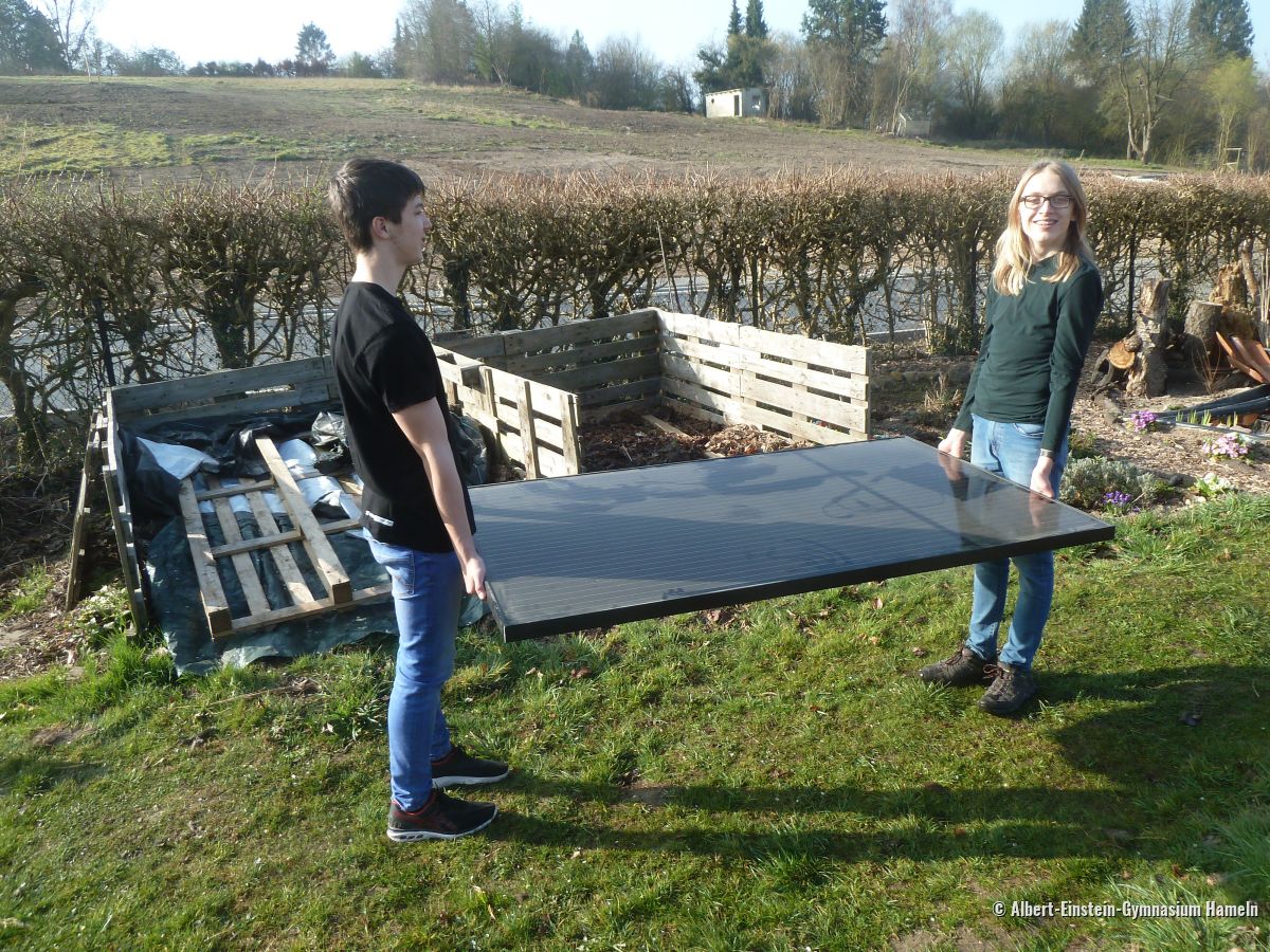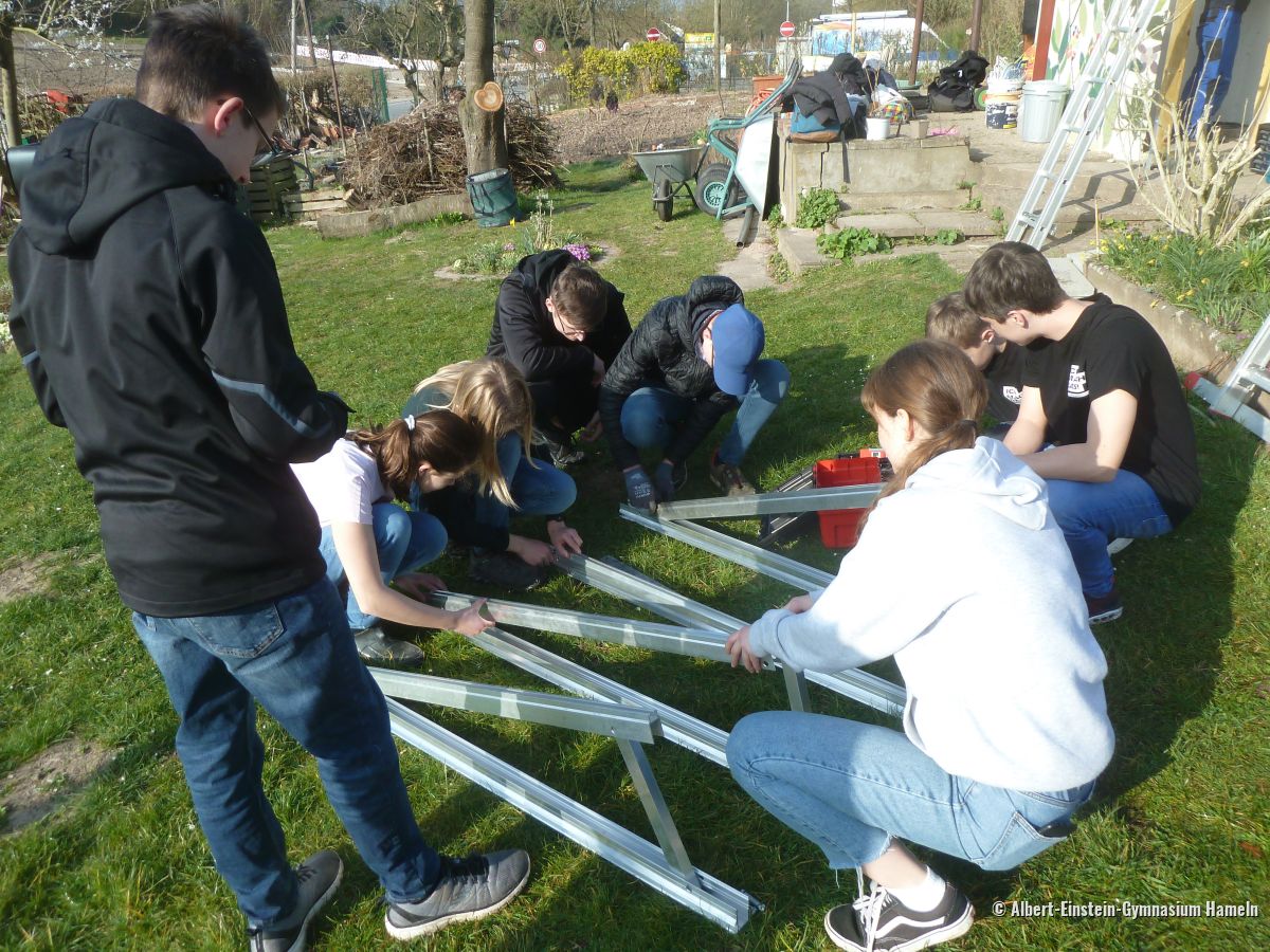 Im Rahmen des Handwerkswettbewerbs konnten wir gemeinsam mit unserem Kooperationspartner, der Firma Elektroma, eine Solaranlage auf unser Gartenhausdach installieren und können nun mit Ökostrom gärtnern. Finanzielle Unterstützung bekamen wir dabei von der Bingo-Umweltstiftung (Terra preta Projekt) und der Sparkasse Hameln-Weserbergland.